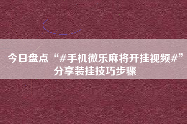 2026最新版下载“微乐捉鸡麻将外卦神器下载安装免费”详细分享装挂步骤教程